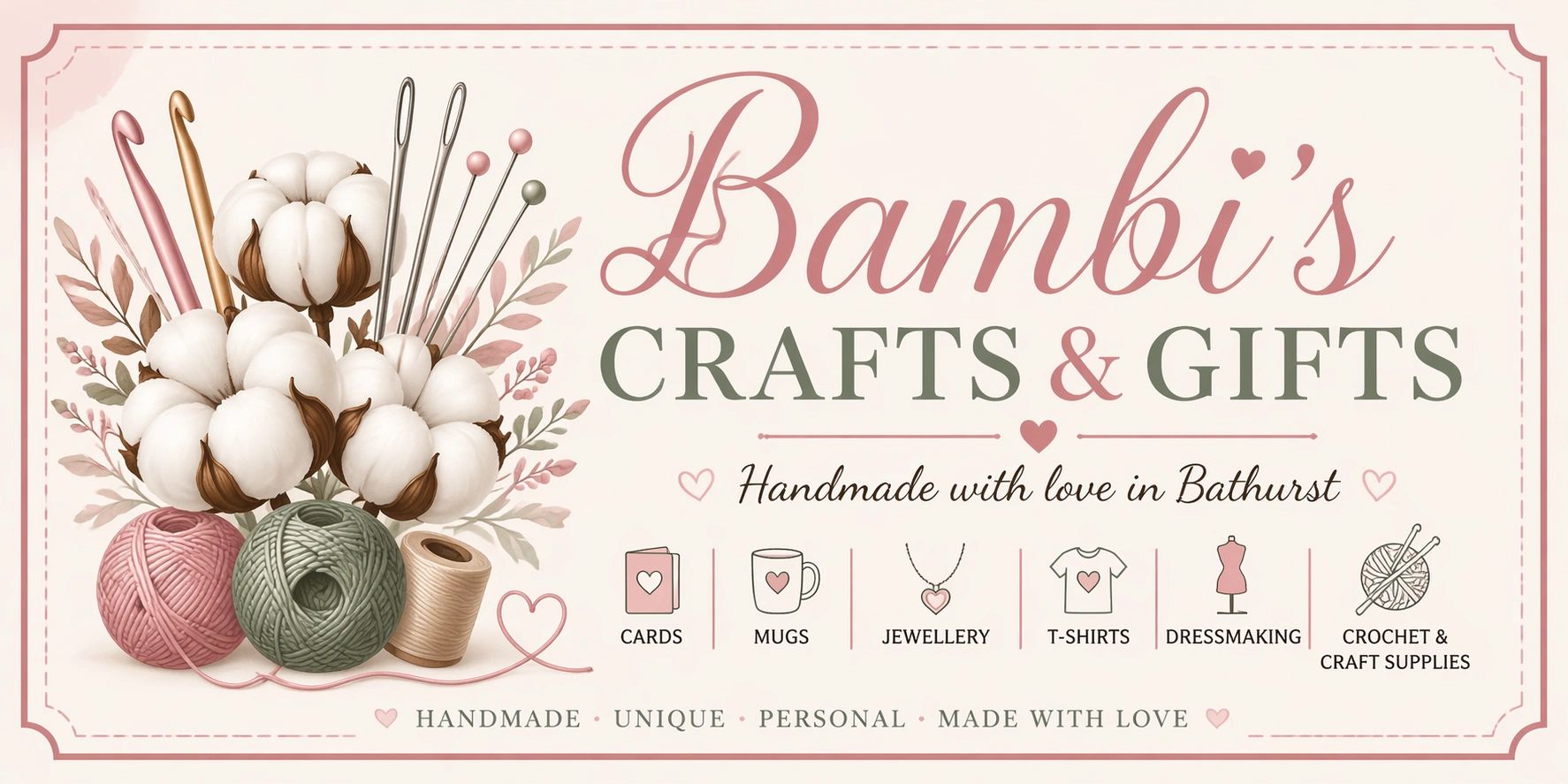 Bambi’s Arts & Crafts aims to provide high-quality, heartfelt creations that make perfect gifts or keepsakes. With a strong focus on creativity, care, and attention to detail, the business is dedicated to making every customer feel special through beautifully crafted designs